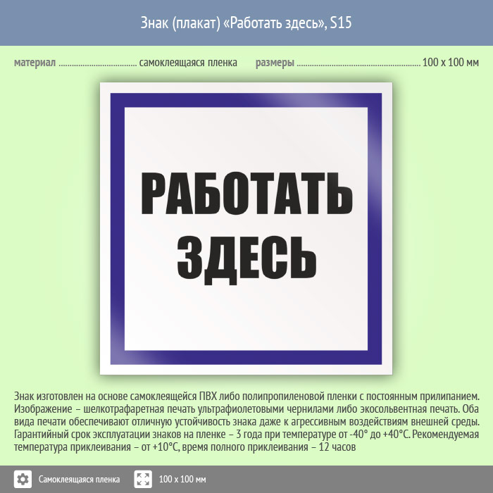 Знак (плакат) «Работать здесь», S15 (пленка, 100х100 мм) в Томске купить