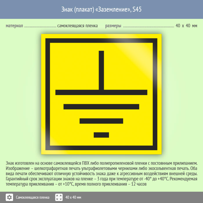 Знак (плакат) «Заземление», S45 (25 штук пленка, 40х40 мм) в Томске купить
