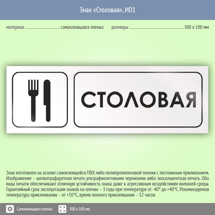 Знак «Столовая», И01 (пленка, 300х100 мм) в Томске купить