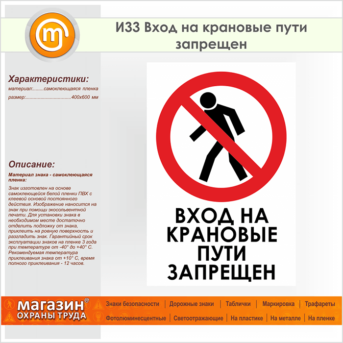 Знак «Вход на крановые пути запрещен», И33 (пленка, 400х600 мм) в Томске купить