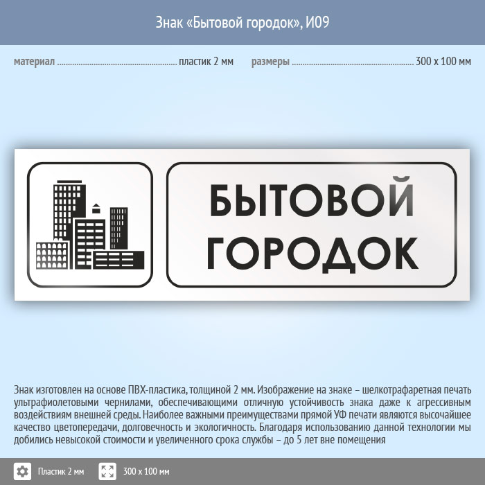 Знак «Бытовой городок», И09 (пластик, 300х100 мм) в Томске купить