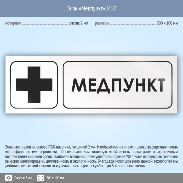 Знак «Медпункт», И17 (пластик, 300х100 мм) в Томске купить