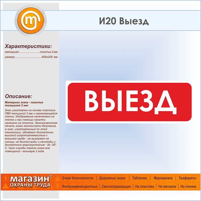 Знак «Выезд», И20 (пластик, 600х200 мм) в Томске купить