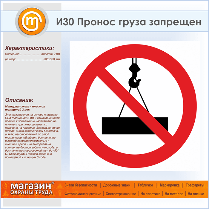 Знак «Пронос груза запрещен», И30 (пластик, 300х300 мм) в Томске купить