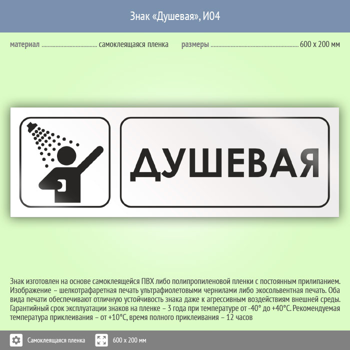 Знак «Душевая», И04 (пленка, 600х200 мм) в Томске купить