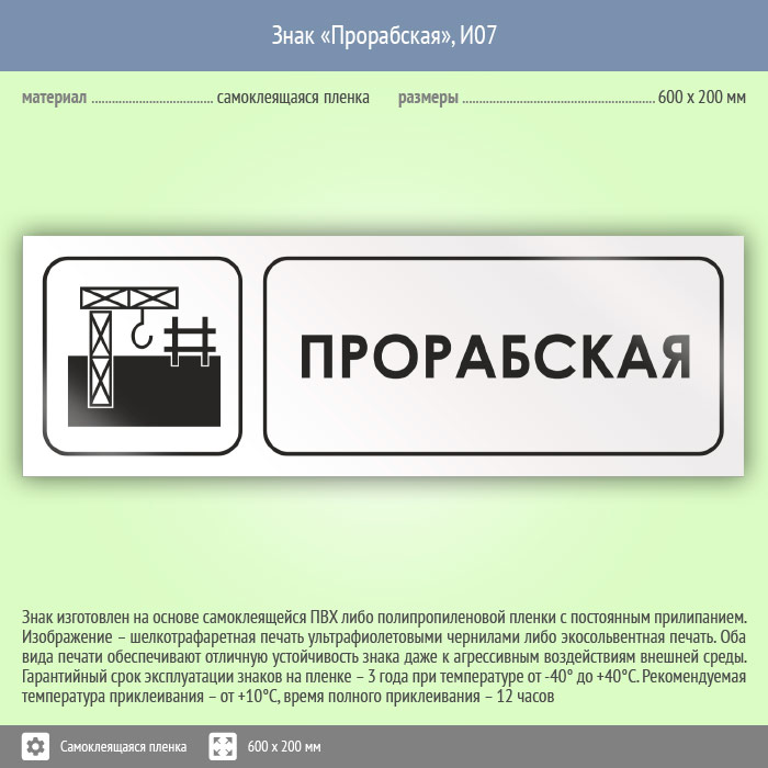 Знак «Прорабская», И07 (пленка, 600х200 мм) в Томске купить