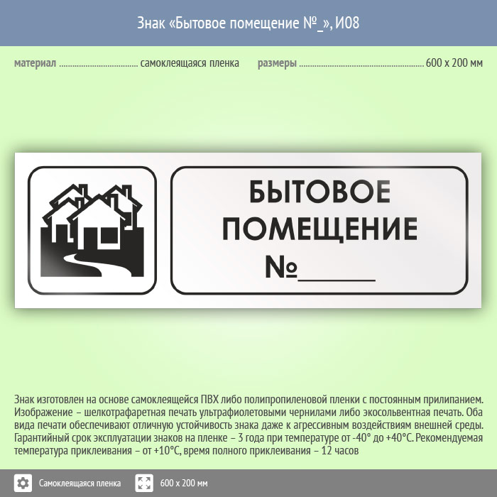 Знак «Бытовое помещение №_», И08 (пленка, 600х200 мм) в Томске купить