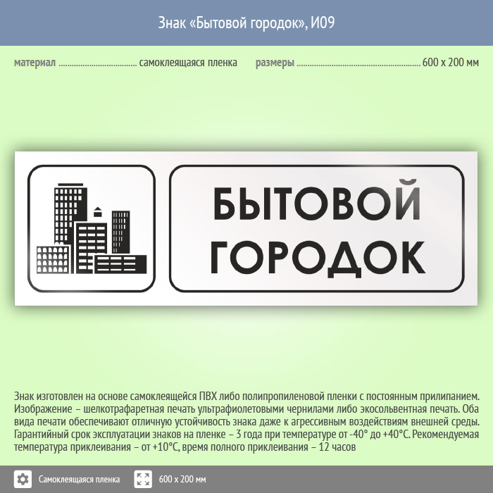Знак «Бытовой городок», И09 (пленка, 600х200 мм) в Томске купить