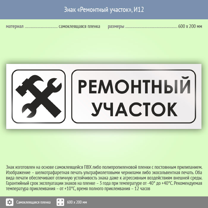 Знак «Ремонтный участок», И12 (пленка, 600х200 мм) в Томске купить