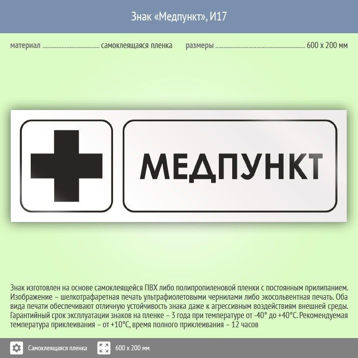 Знак «Медпункт», И17 (пленка, 600х200 мм) в Томске купить