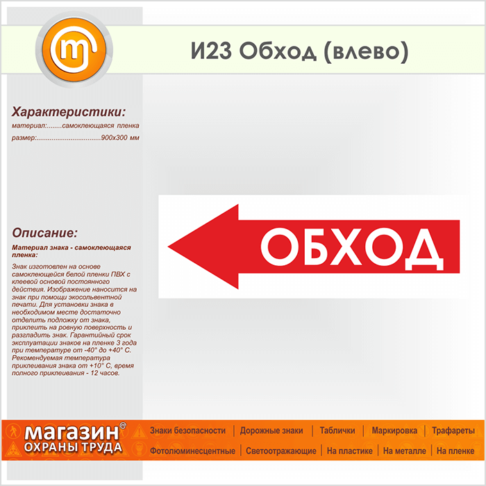 Знак «Обход (влево)», И23 (пленка, 900х300 мм) в Томске купить