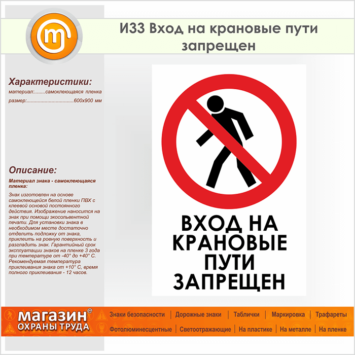 Знак «Вход на крановые пути запрещен», И33 (пленка, 600х900 мм) в Томске купить