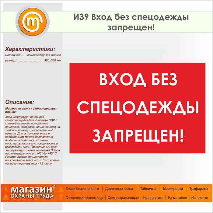 Знак «Вход без спецодежды запрещен!», И39 (пленка, 900х600 мм) в Томске купить