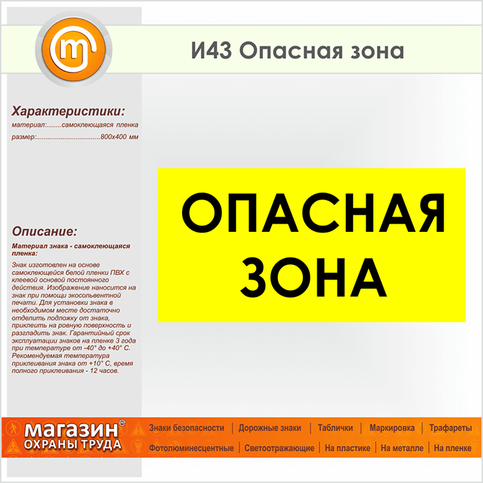 Знак «Опасная зона», И43 (пленка, 800х400 мм) в Томске купить