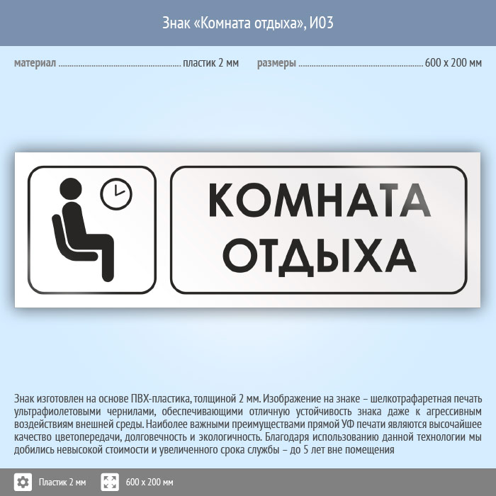 Знак «Комната отдыха», И03 (пластик, 600х200 мм) в Томске купить