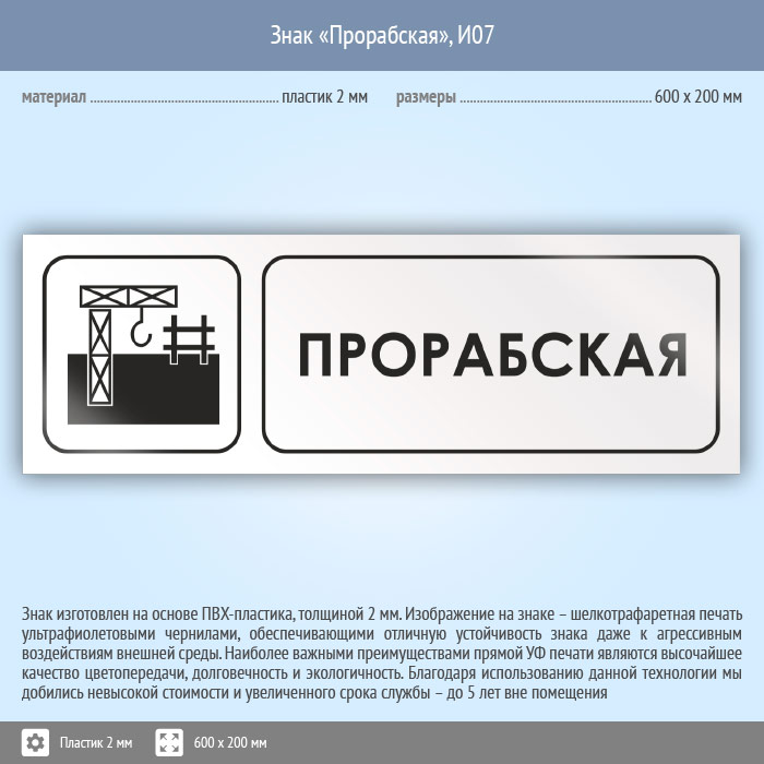 Знак «Прорабская», И07 (пластик, 600х200 мм) в Томске купить