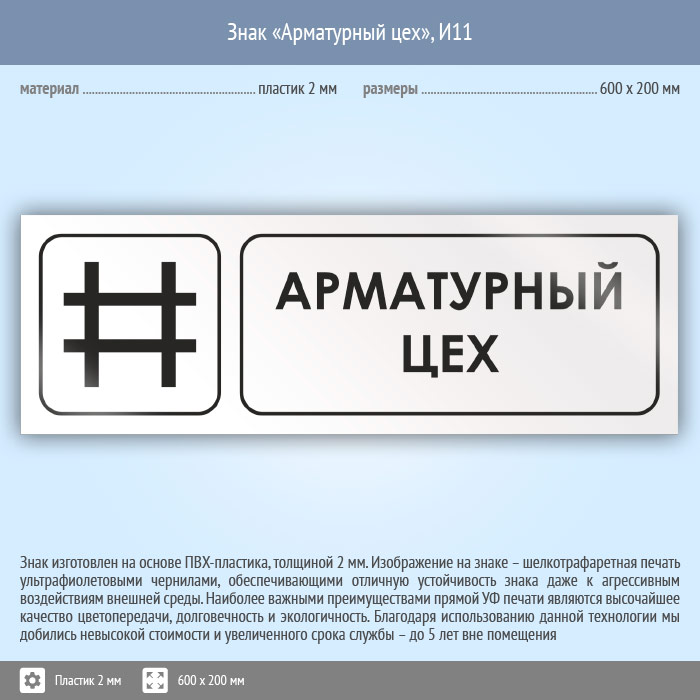 Знак «Арматурный цех», И11 (пластик, 600х200 мм) в Томске купить