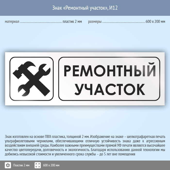 Знак «Ремонтный участок», И12 (пластик, 600х200 мм) в Томске купить