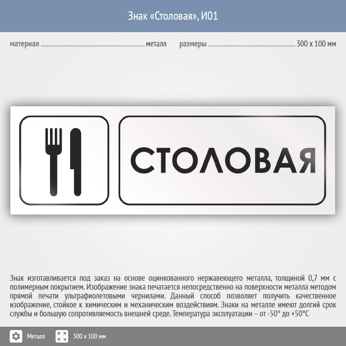 Знак «Столовая», И01 (металл, 300х100 мм) в Томске купить