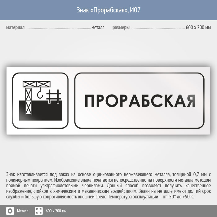 Знак «Прорабская», И07 (металл, 600х200 мм) в Томске купить
