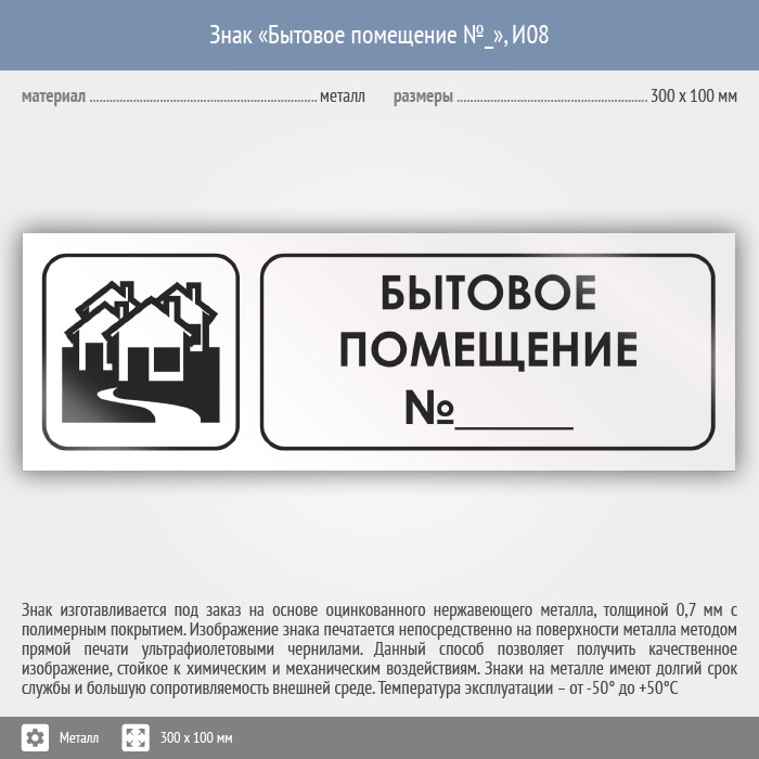 Знак «Бытовое помещение №_», И08 (металл, 300х100 мм) в Томске купить