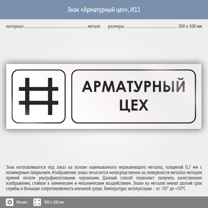 Знак «Арматурный цех», И11 (металл, 300х100 мм) в Томске купить