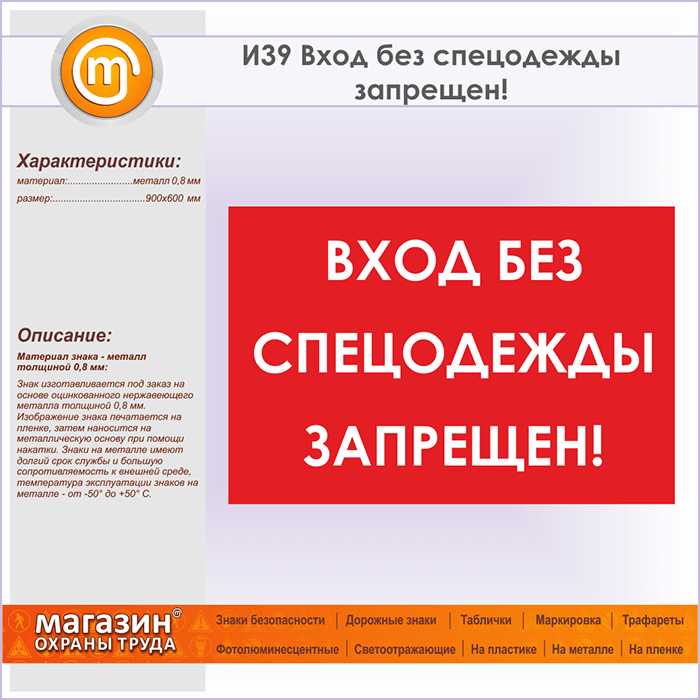 Знак «Вход без спецодежды запрещен!», И39 (металл, 900х600 мм) в Томске купить