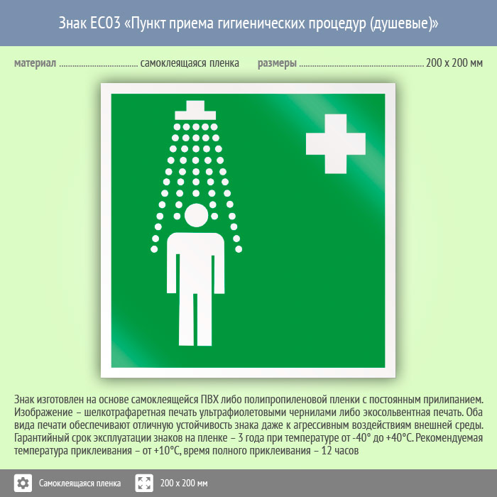 Знак EC03 «Пункт приема гигиенических процедур (душевые)» (пленка, 200х200 мм) в Томске купить