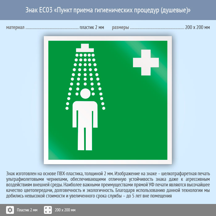 Знак EC03 «Пункт приема гигиенических процедур (душевые)» (пластик, 200х200 мм) в Томске купить