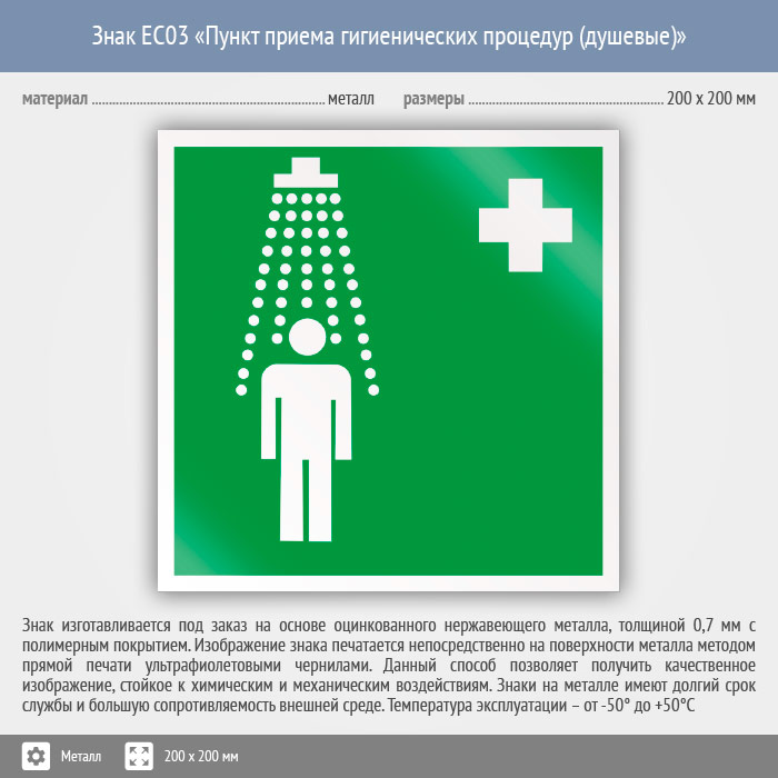 Знак EC03 «Пункт приема гигиенических процедур (душевые)» (металл, 200х200 мм) в Томске купить