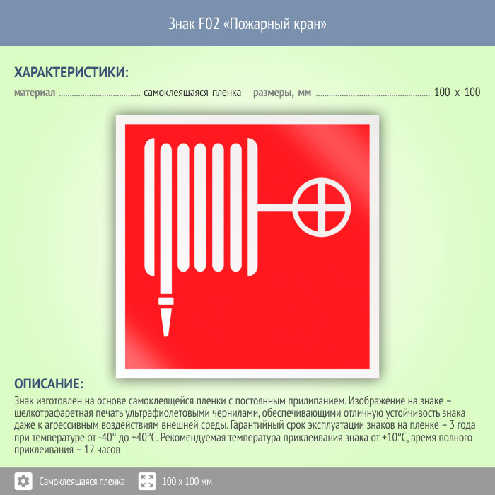 Знак F02 «Пожарный кран» (пленка, 100х100 мм) в Томске купить