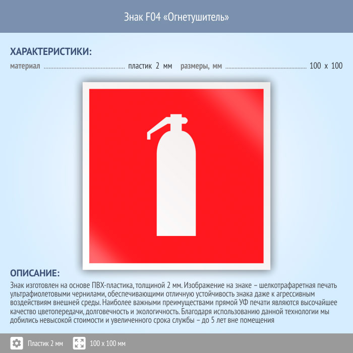 Знак F04 «Огнетушитель» (пластик, 100х100 мм) в Томске купить