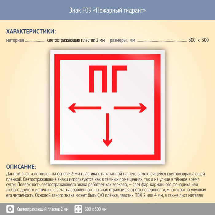 Знак F09 «Пожарный гидрант» (светоотражающий пластик, 300х300 мм) в Томске купить