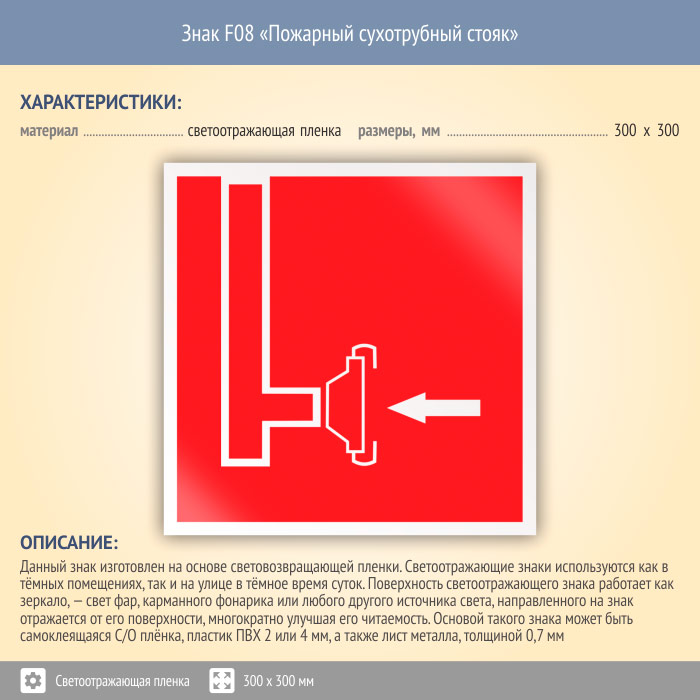 Знак F08 «Пожарный сухотрубный стояк» (светоотражающая пленка, 300х300 мм) в Томске купить