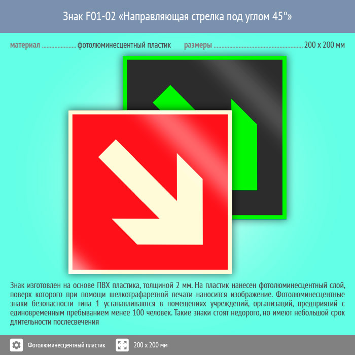 Знак F01-02 «Направляющая стрелка под углом 45°» (фотолюминесцентный пластик, 200х200 мм) в Томске купить