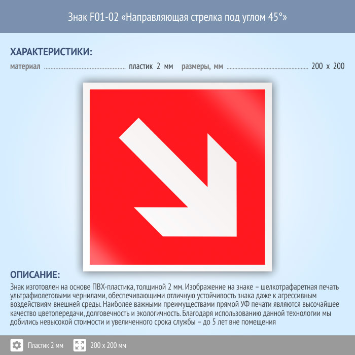 Знак F01-02 «Направляющая стрелка под углом 45°» (пластик, 200х200 мм) в Томске купить