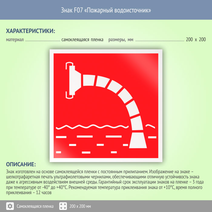 Знак F07 «Пожарный водоисточник» (пленка, 200х200 мм) в Томске купить