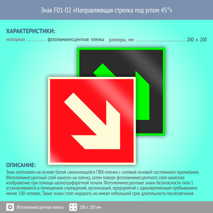 Знак F01-02 «Направляющая стрелка под углом 45°» (фотолюминесцентная пленка, 200х200 мм) в Томске купить