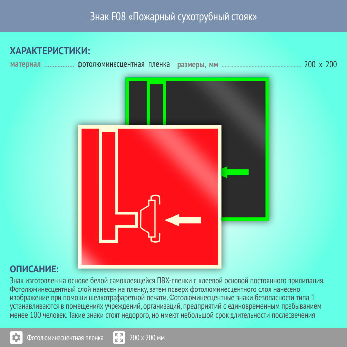 Знак F08 «Пожарный сухотрубный стояк» (фотолюминесцентная пленка, 200х200 мм) в Томске купить