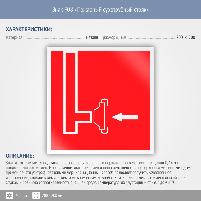 Знак F08 «Пожарный сухотрубный стояк» (металл, 200х200 мм) в Томске купить